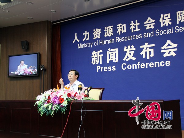 人力資源社會(huì)保障部發(fā)言人尹成基回答記者的問題。中國網(wǎng) 張琳 攝